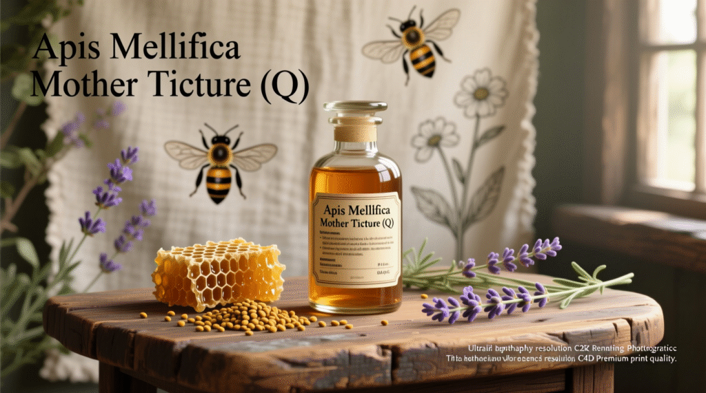Apis Mellifica Mother Tincture, commonly known as Apis Mellifica Q, is a widely used homoeopathic medicine prepared from the honeybee. In homoeopathy, Apis Mellifica is best known for its action on swelling, inflammation, allergic reactions, and fluid retention in the body.